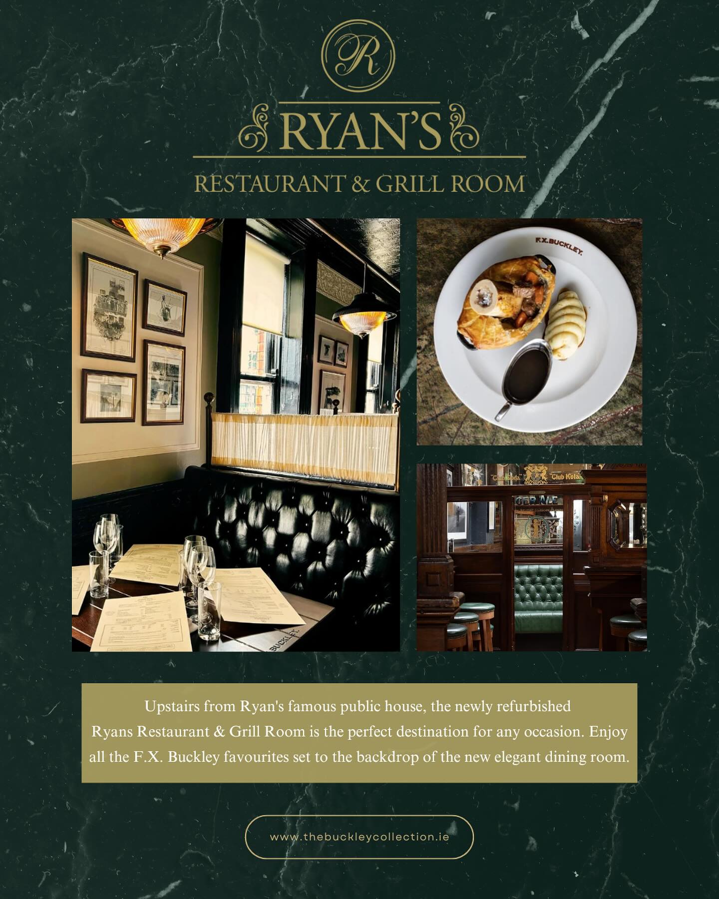 Long established as providers of Ireland’s finest, premium quality meat, The Buckley Collection is a group of superbly located steakhouses, gastro pubs, bars, and a grocery store renowned for great food and service.
