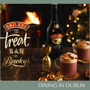The Baileys Treat Bar at Bewley’s will run, from 13th – 15th December, opening from 4.00pm – 8.00pm each evening with time slots each day accommodating bookings of 2 and 4 persons.