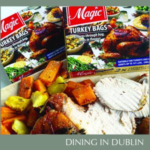 – Once tied cut slits in the top of the bag to release any air during cooking… pop into the oven (cooking times will vary depending on the weight of your joint) making sure the bag doesn’t touch the side of the oven