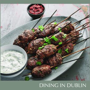 - Arrange on serving platter, drizzle with olive oil and garnish with mint and coriander. Serve with the harissa and yogurt sauces.